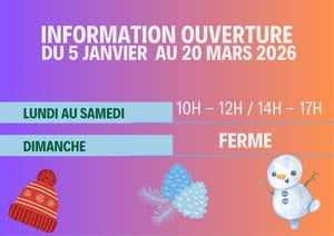 Horaires d'ouverture jusqu'au 20 mars 2026 inclus